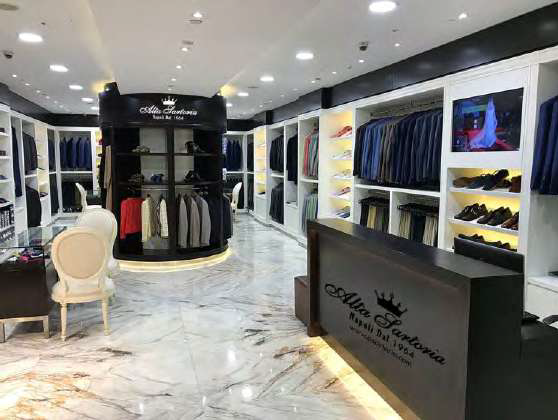 our main brand: Alta Sartoria – Napoli Dal 1964 and has retail stores in UAE and Italy, our products range from formal suits to casual wear with total look items from suits, jackets, dress shirts, polo shirts, T-shirts, dress pants, jeans, underwear, ties and shoes.